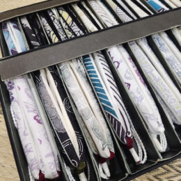 12月2日から始まります「小樽 瀬塚商店 冬の履物展」防寒草履の他にも、oteshioのオリジナルの鼻緒も揃いました。写真は、龍村織物美術の裂で制作しました半幅帯と鼻緒になります。どの草履・下駄に合わせましょうか?3日間の短い期間ですが、楽しんで頂きたいと思います。