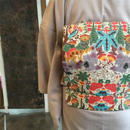 着物 江戸小紋 岩下 江美佳 作 帯 手織博多帯(花鳥風月)松浦 長治 作