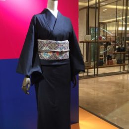 追伸 銀座三越1階にて、私の藍大島紬が、14日まで宜保聡さんの紅型の帯と一緒に展示されています。