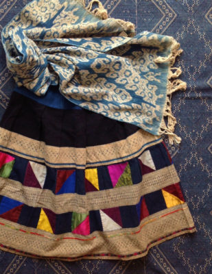 繊細なロウ描き文様の藍布に色とりどりの絹布でパッチワークした雲南省 イ族のスカート。 どんな風に装われていたの?そして、oteshioでは、どんな風に装われるの?織り、染め、刺繍に衣(ころも)冬の札幌に今年も向かいます